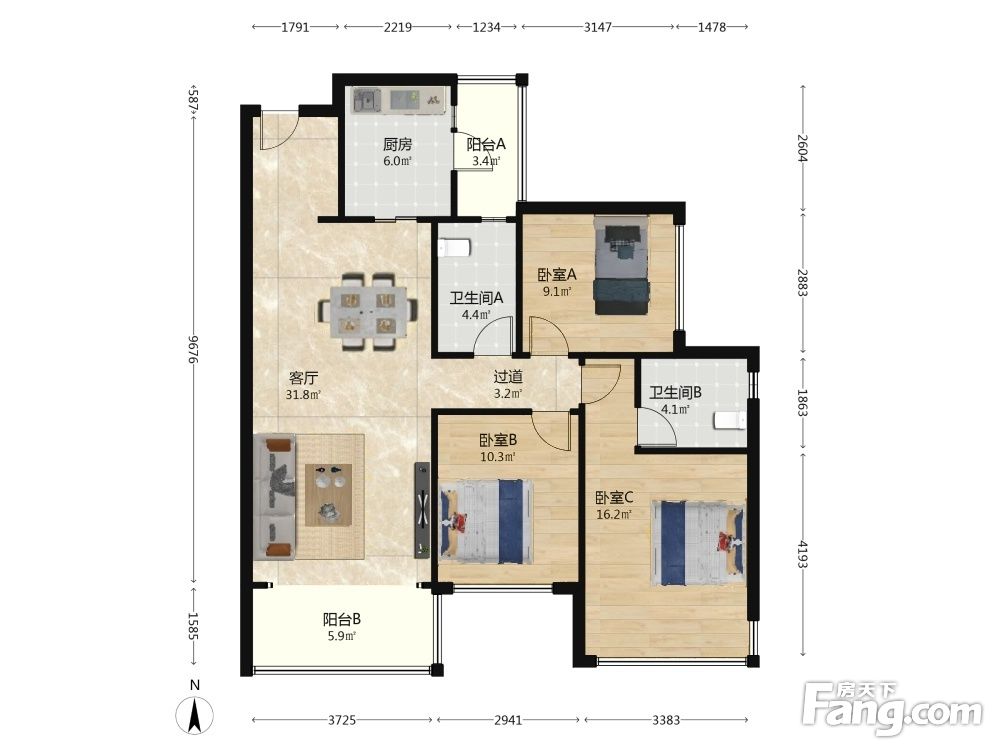 3室2厅1卫