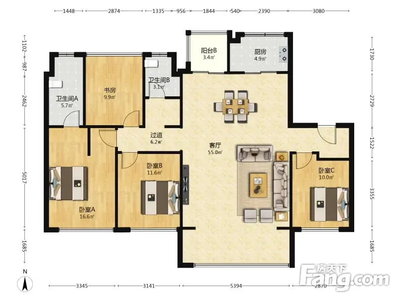 房屋拥有相对宽松的尺寸,布局通透,动静分离,设计豪华