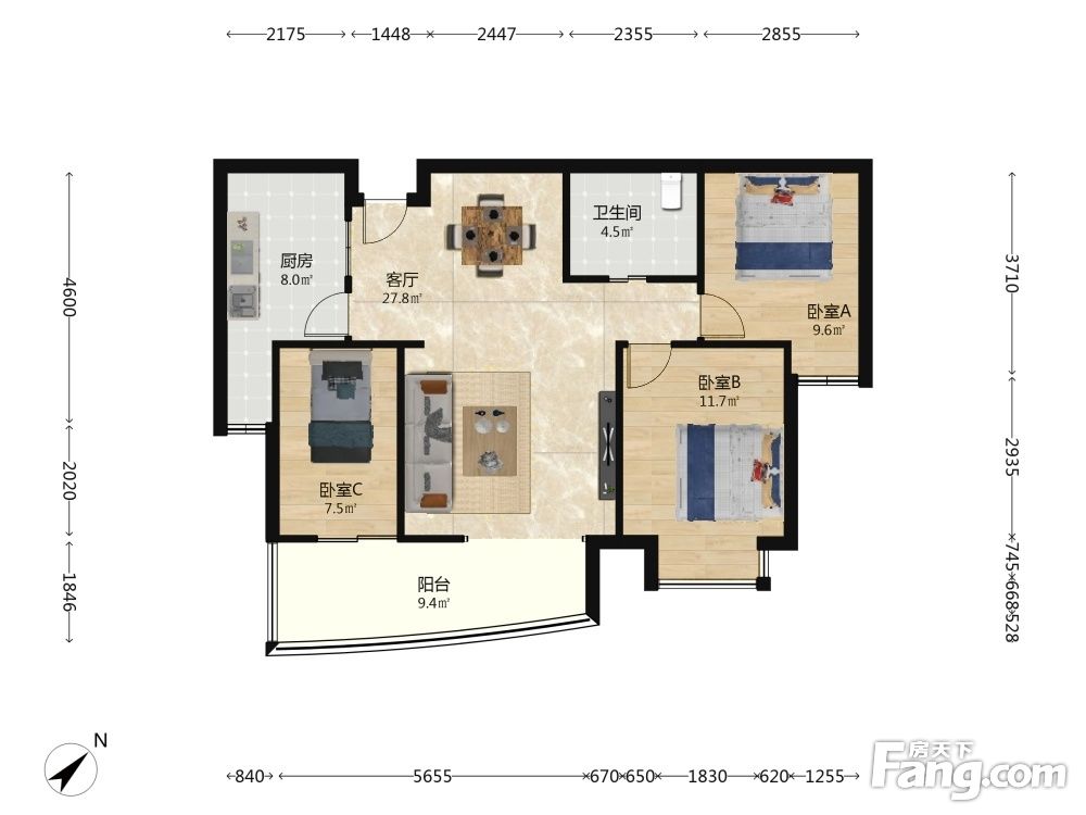 户型齐全,主打明卫,双阳台三居
