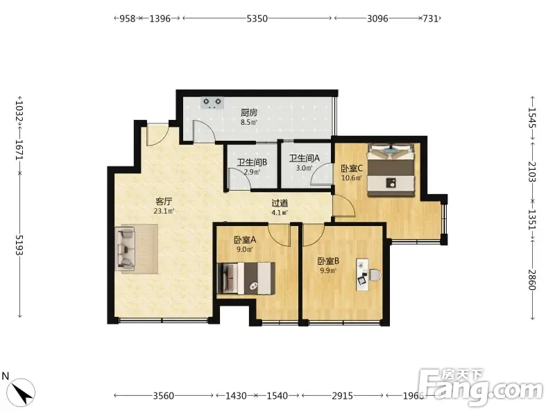 户型齐全,主打明卫,客厅朝南,双卧朝南,主卧朝南三居