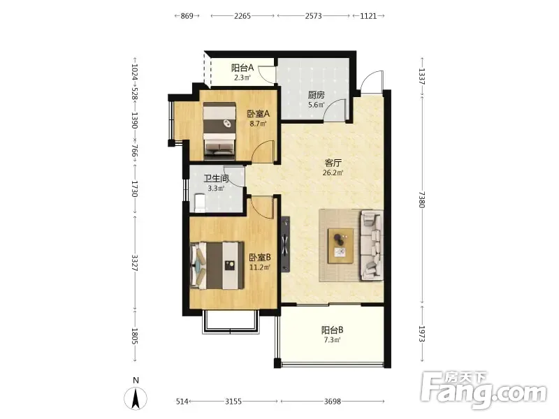 户型齐全,主打户型方正,客厅朝南二居