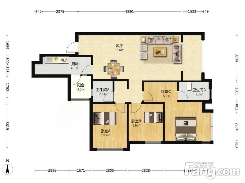 3室2厅1卫