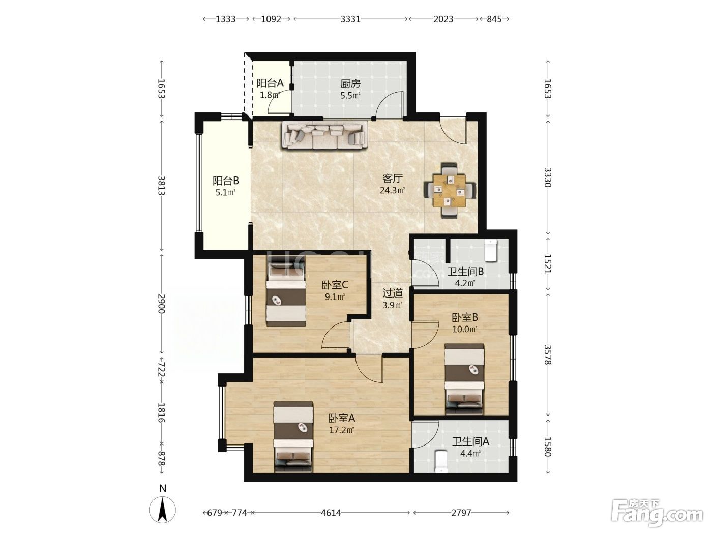 3室2厅1卫