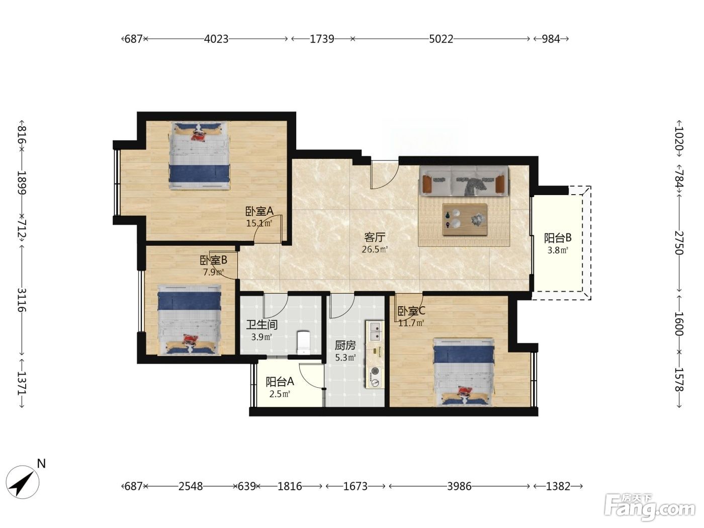 3室2厅1卫
