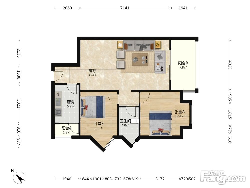 户型齐全,主打明卫,客厅朝南,双阳台二居