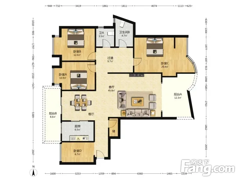 户型齐全,主打独立衣帽间四居