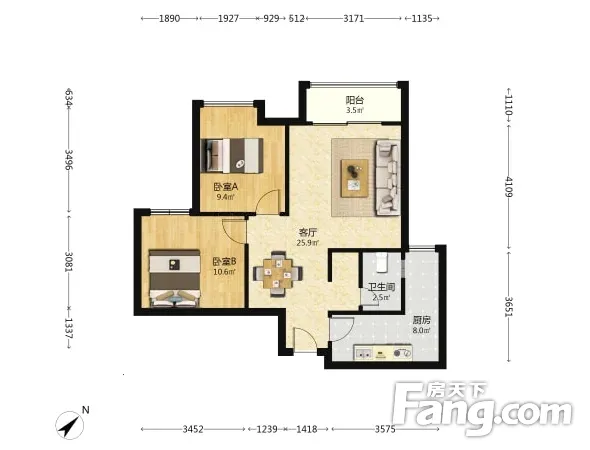 户型齐全,主打明卫,客厅朝南二居