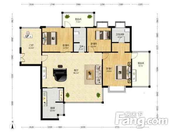 户型齐全,主打户型方正,明卫,明厨,客厅朝南,双阳台,主卧朝南三居