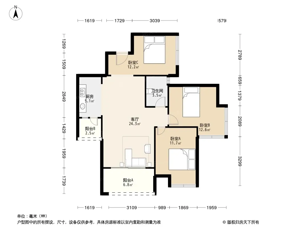 户型齐全,主打户型方正,明厨,明卫,双阳台三居