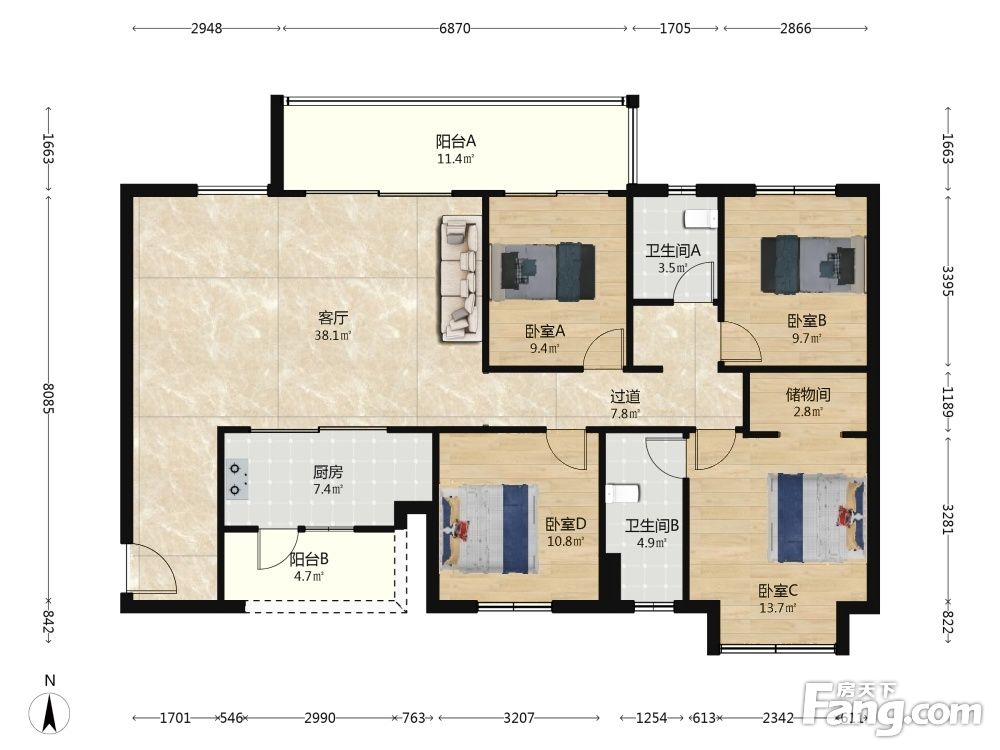 中粮保利麓湖天荟 4室2厅 东南