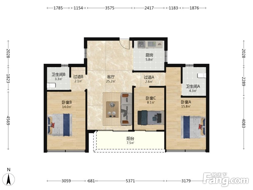 户型齐全,主打全明格局,户型方正三居