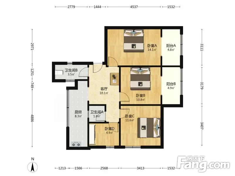 人民中路三段14号院 4室1厅 83.9平