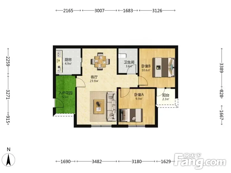 户型齐全,主打明卫,双卧朝南三居