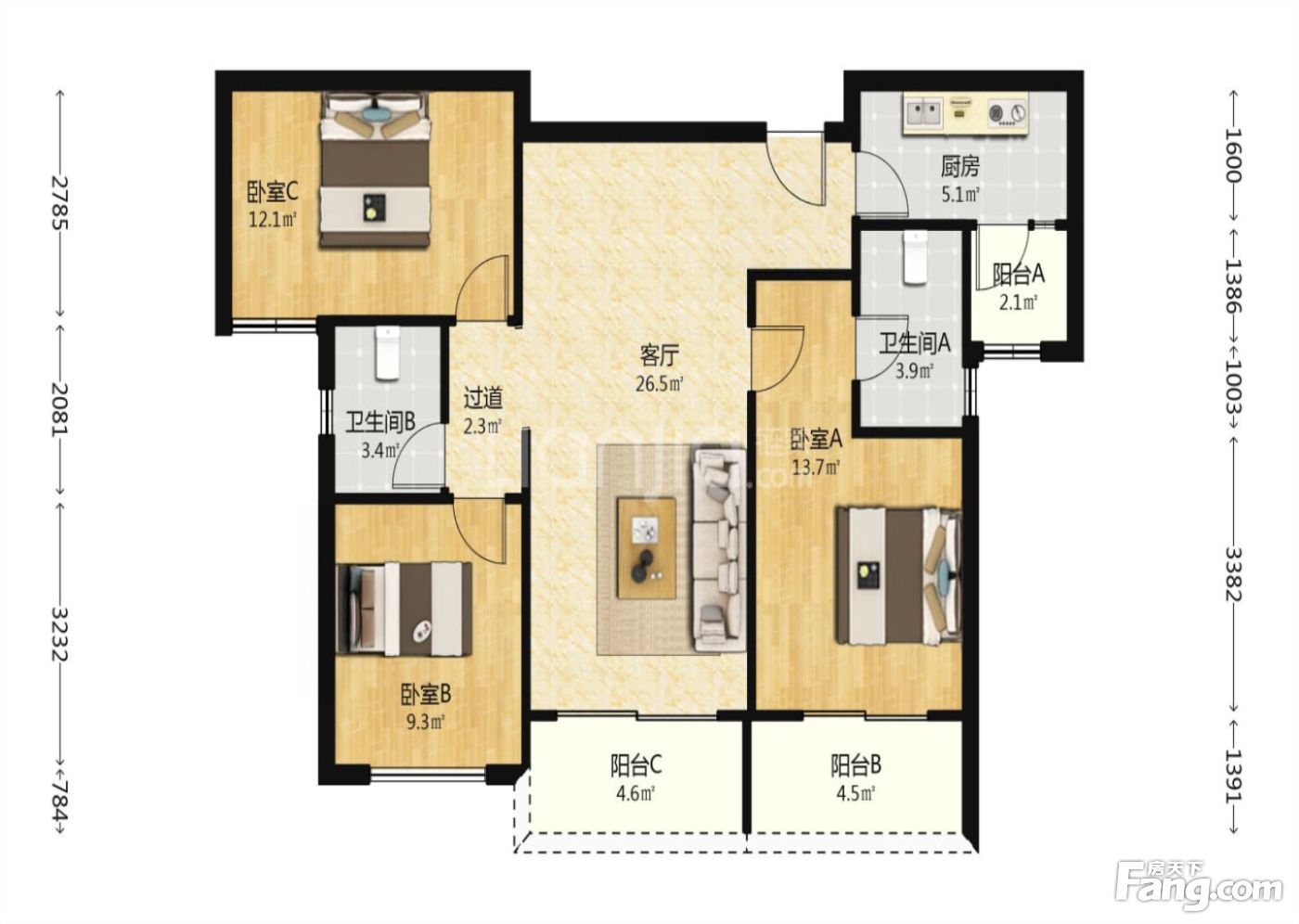 3室2厅1卫