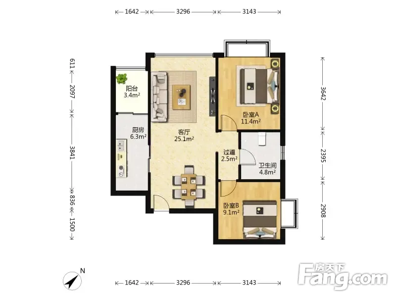 户型齐全,主打客厅朝南二居