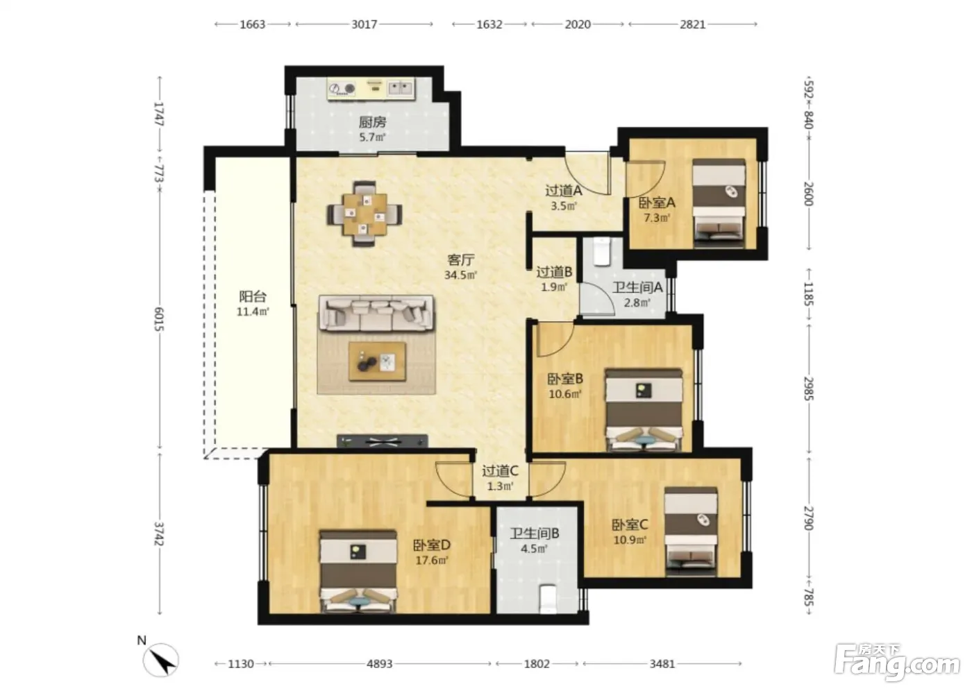 龙湖龙悦台 4室2厅 南 北