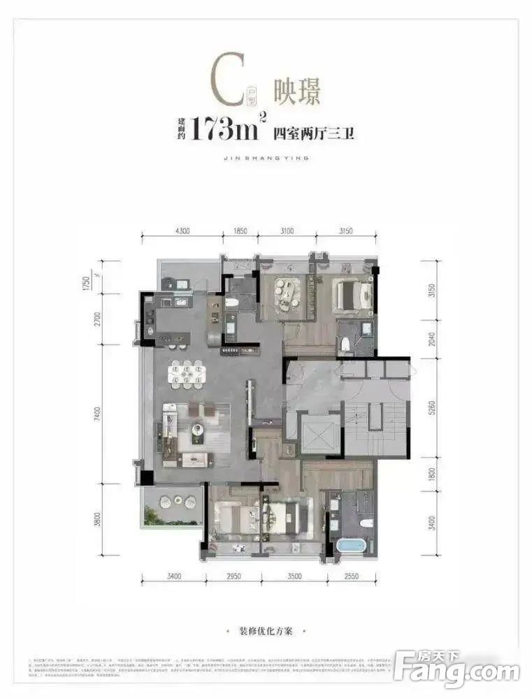 新房代理:现房首付89万入住金融城千年文脉锦江173平大平层