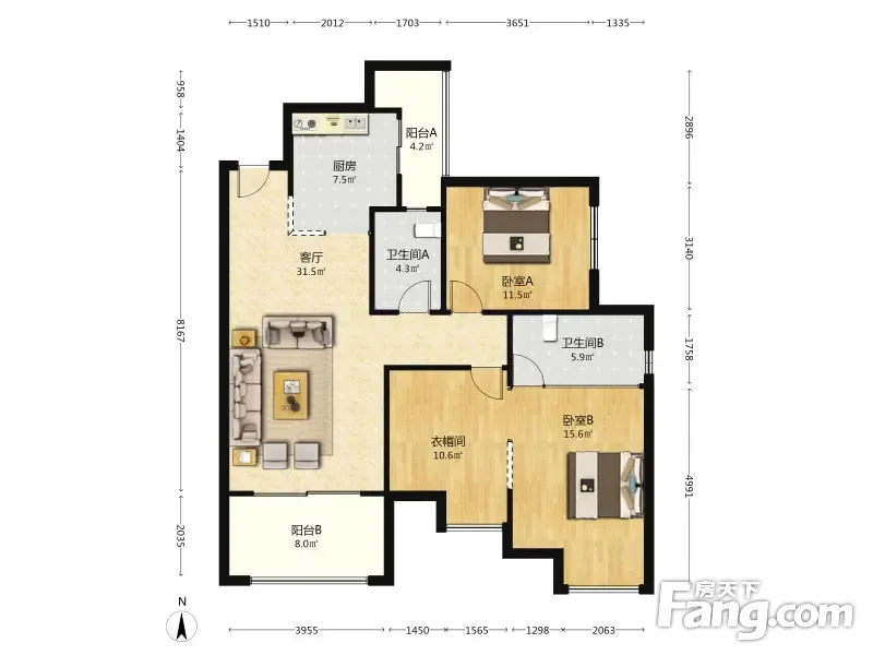 户型齐全,主打客厅朝南四居