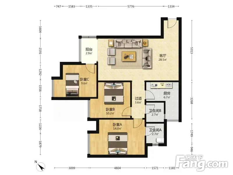 曹家巷恒大雅苑 3室2厅 103.42平