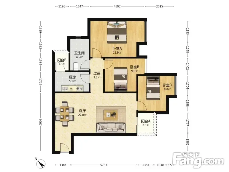3室2厅1卫