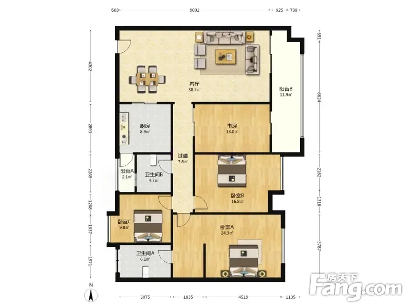 户型齐全,主打户型方正,明卫三居