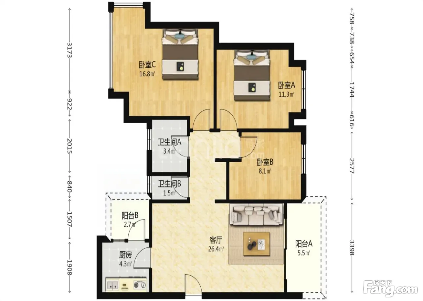 3室2厅1卫