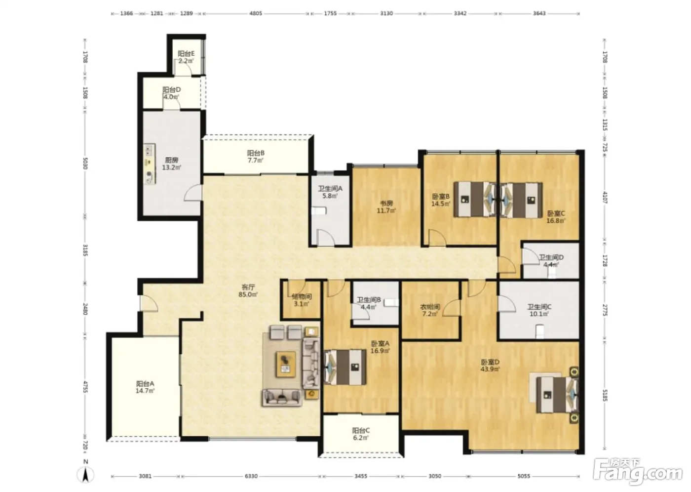 户型齐全,主打独立衣帽间,明卫,双阳台四居