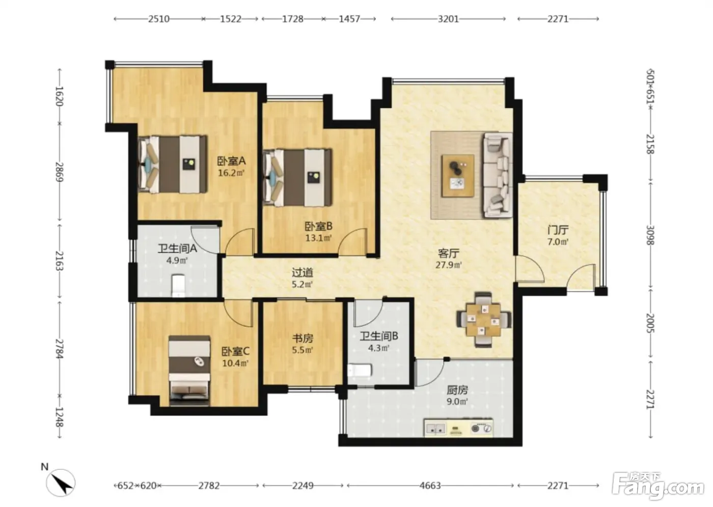 户型齐全,主打户型方正,明卫,客厅朝南三居