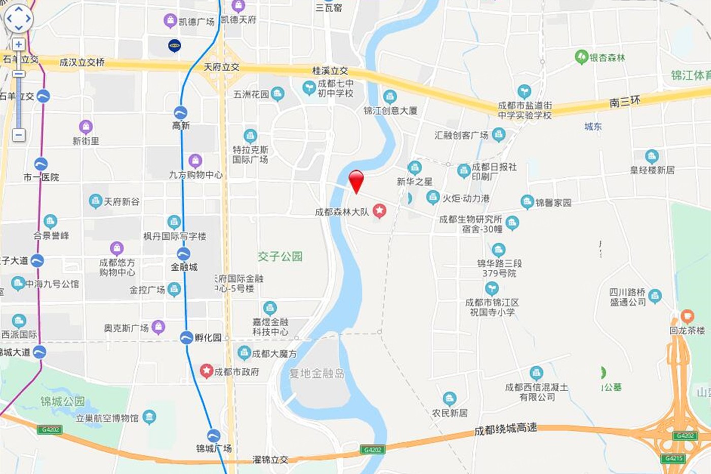 皇冠假日酒店、洲际酒店、费尔蒙酒店餐饮:俏江南、港莉茶餐厅、蜀缘快乐餐厅、尊尚牛排、土碗香、乐天美食街商场:欧尚、宜居、迪卡侬、伊藤、百货、美美力诚旗舰店、奥斯莱特购物中心、中航时尚购物中心,银泰城购物中心(银行:中国银行、工商银行、光大银行、中信银行、兴业银行、农业银行、建设银行、进出口银行医院:成都市人民医院、华