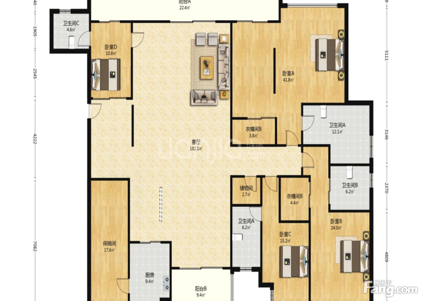 户型齐全,主打南北通透,主卧带卫,带衣帽间,双阳台,餐客分离四居