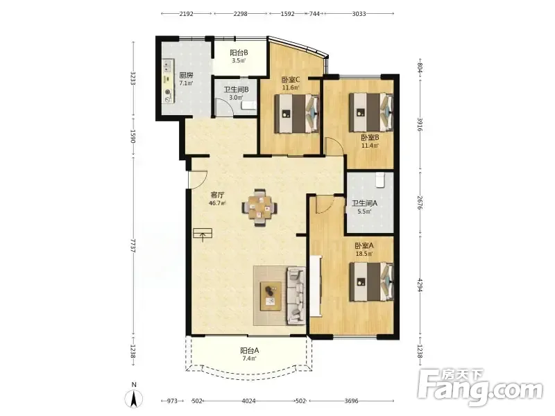 3室2厅1卫
