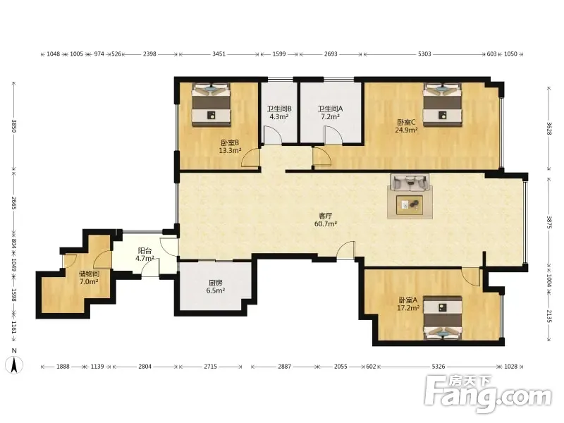 户型齐全,主打明卫,客厅朝南,双卧朝南,主卧朝南三居