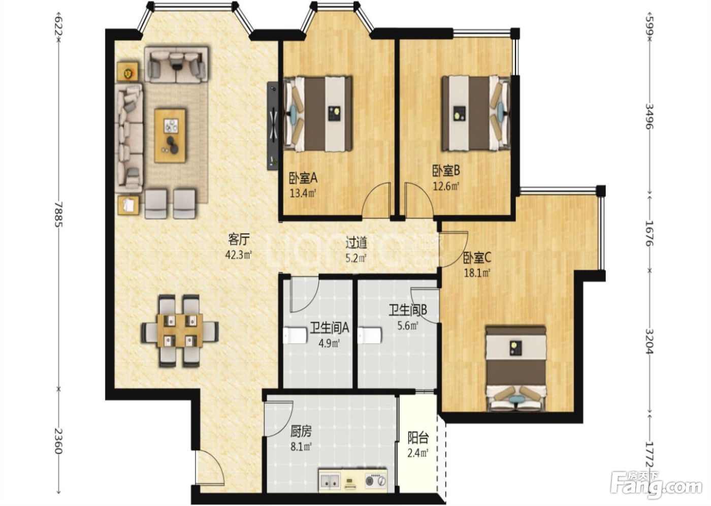 户型齐全,主打明卫,双阳台三居