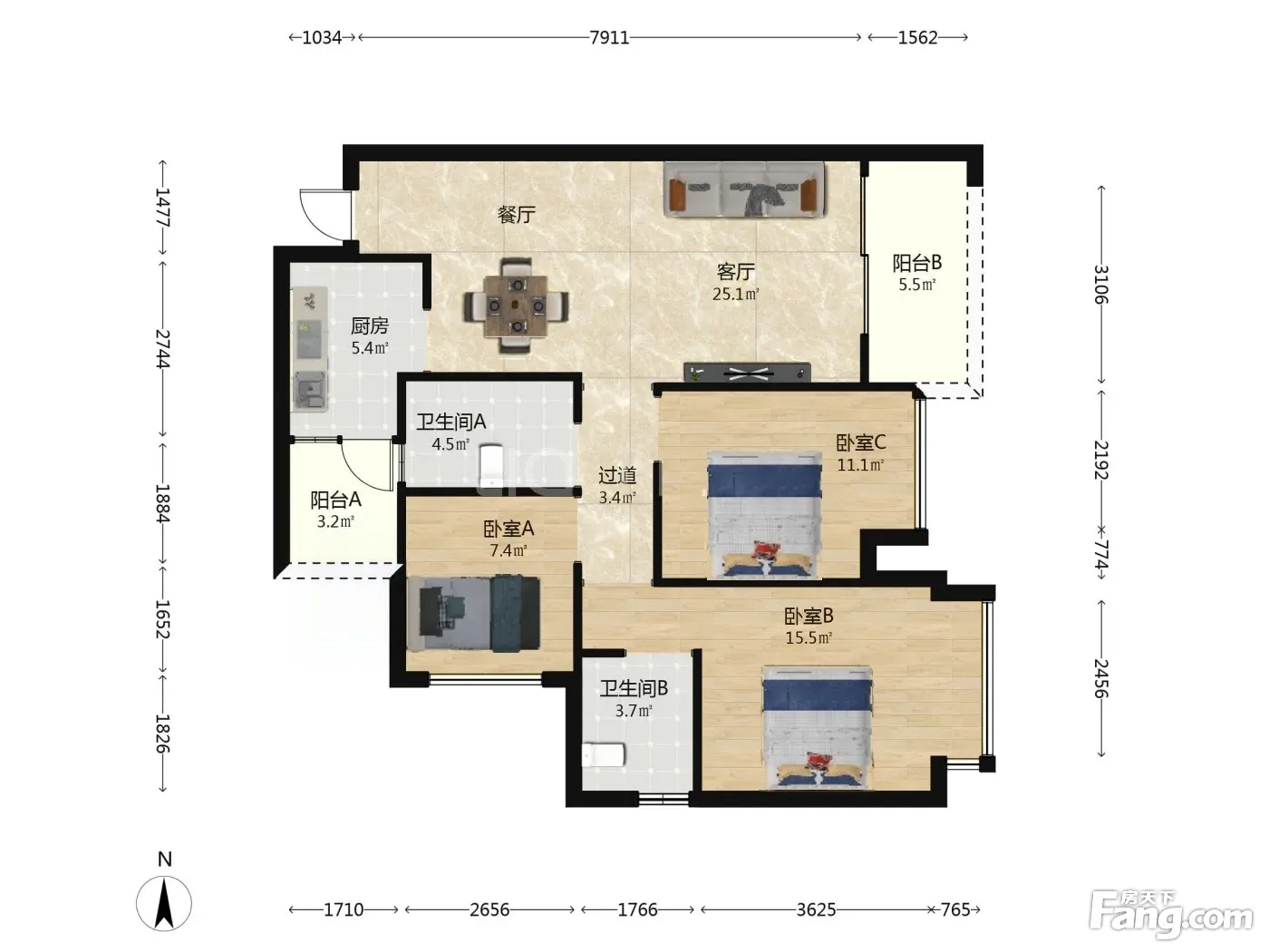 3室2厅1卫