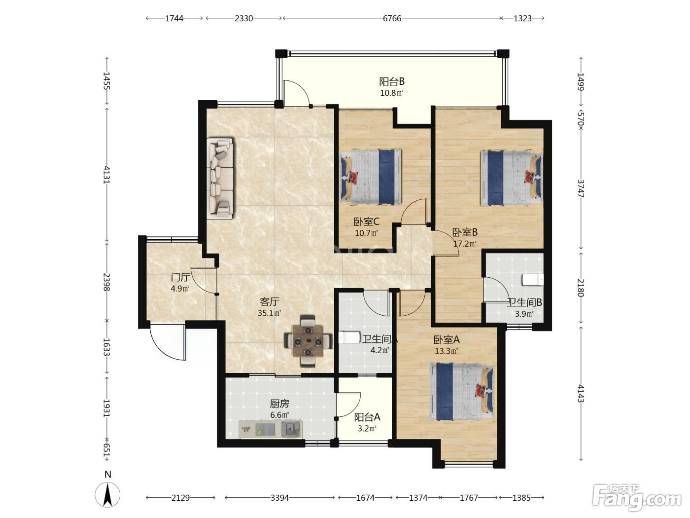 户型齐全,主打户型方正,明卫三居