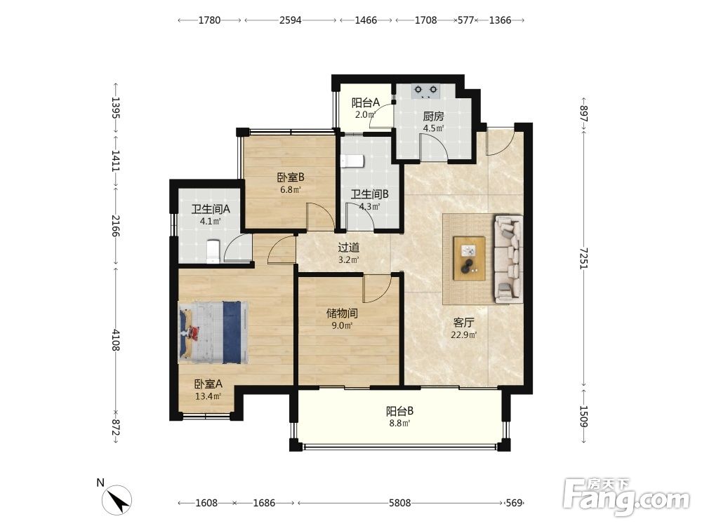 3室2厅1卫