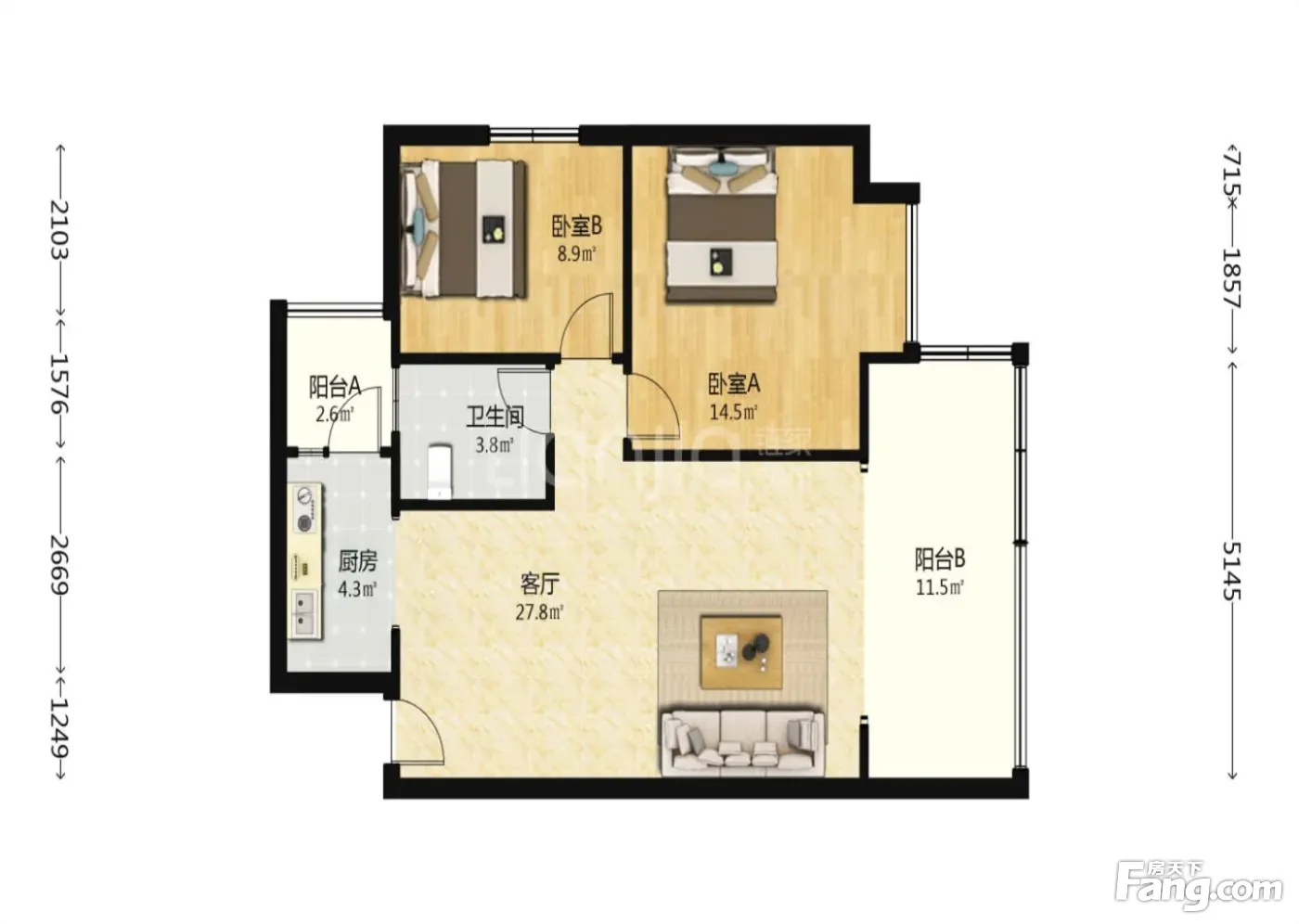 正成名城左岸 2室1厅 南