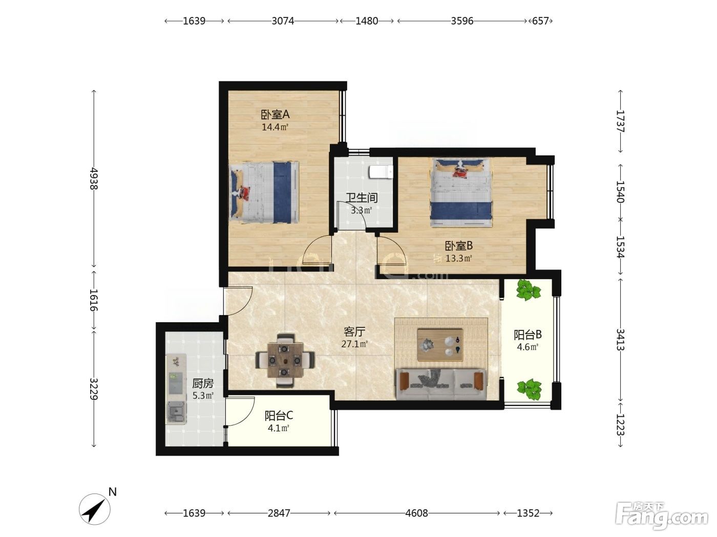 户型齐全,主打明厨,明卫,客厅朝南,全明格局三居