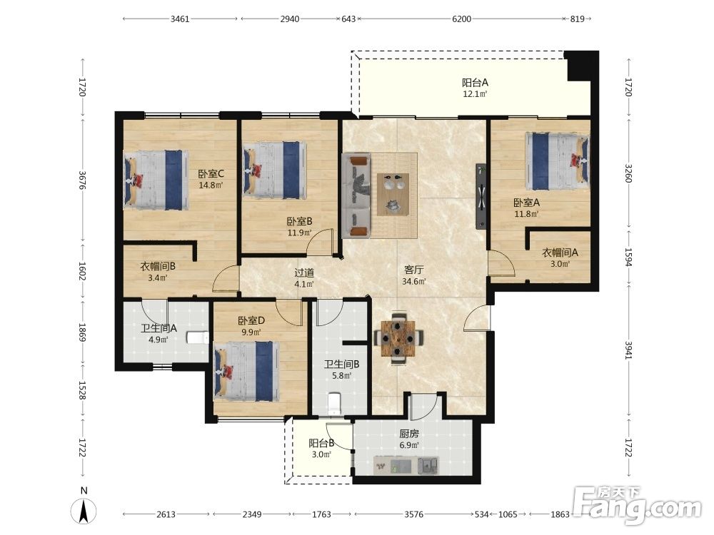 户型齐全,主打户型方正 ,动静分离四居