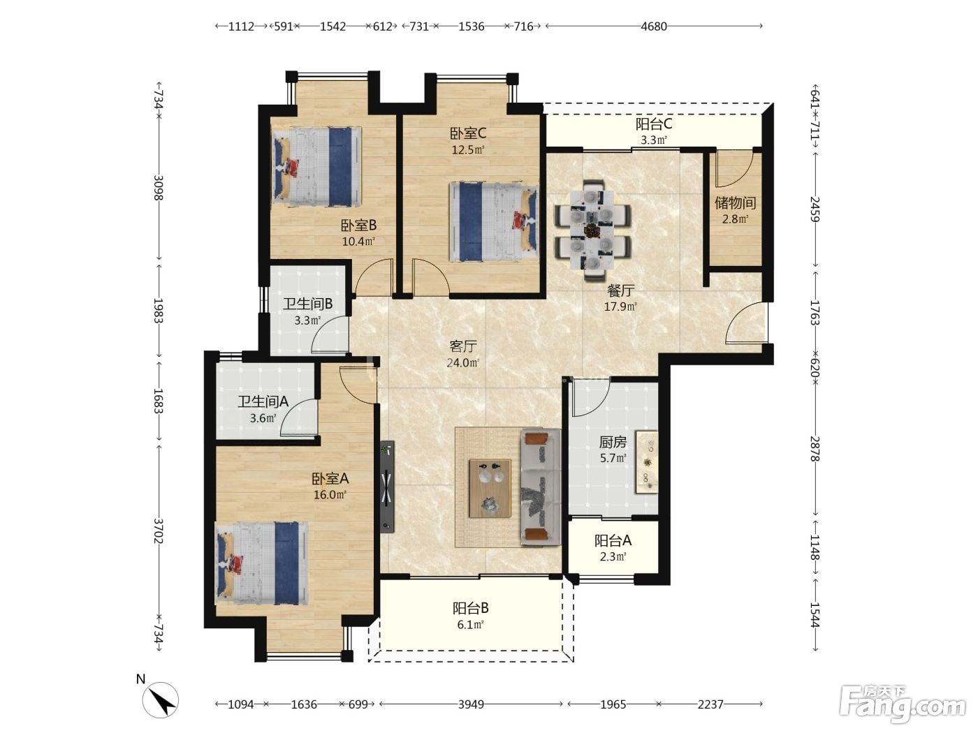 3室2厅1卫