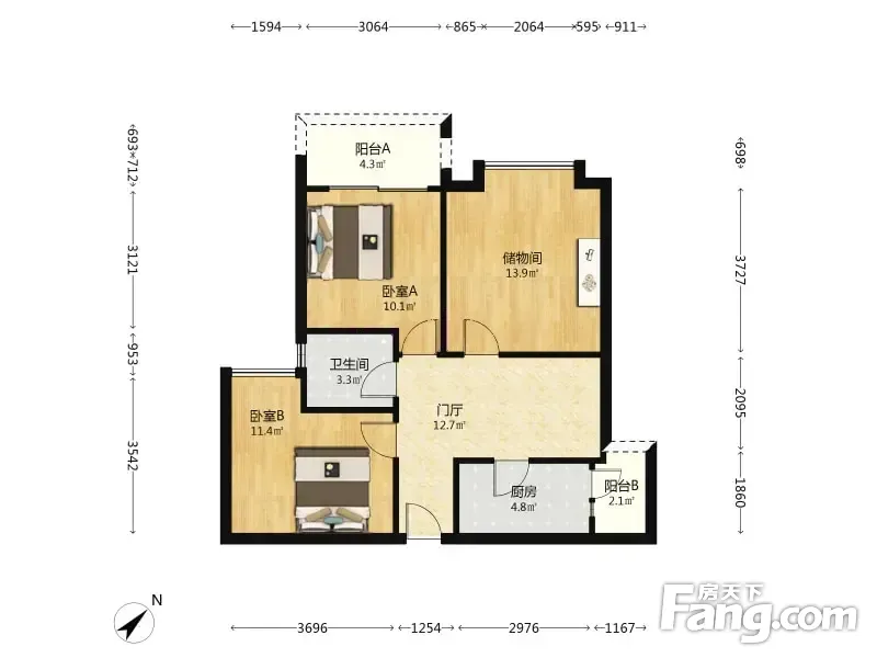 户型齐全,主打明卫,客厅朝南二居