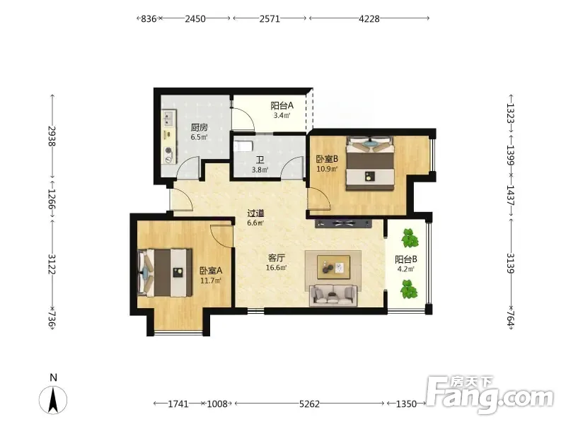 户型齐全,主打明卫,客厅朝南,双阳台二居