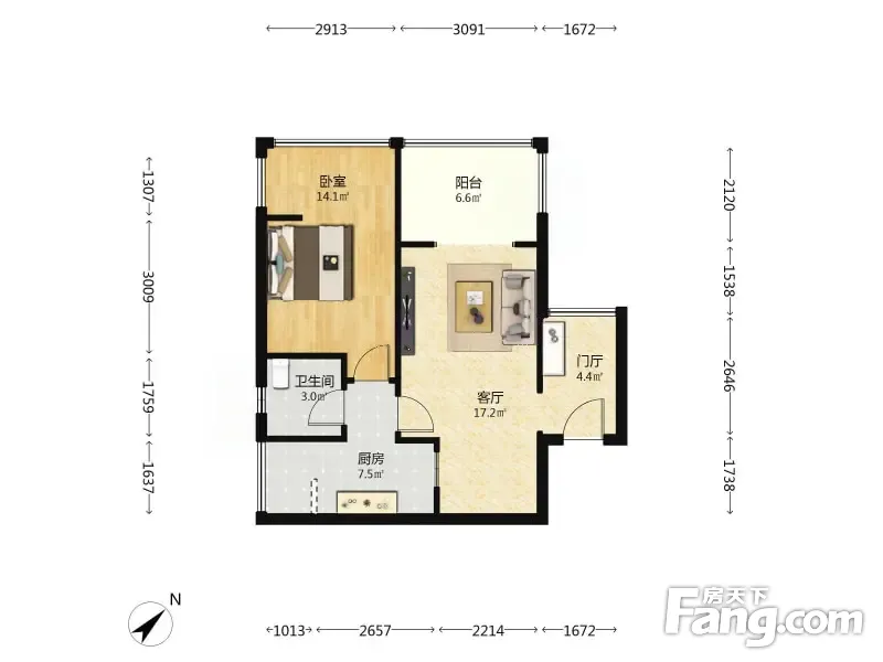 户型齐全,主打明卫,客厅朝南二居