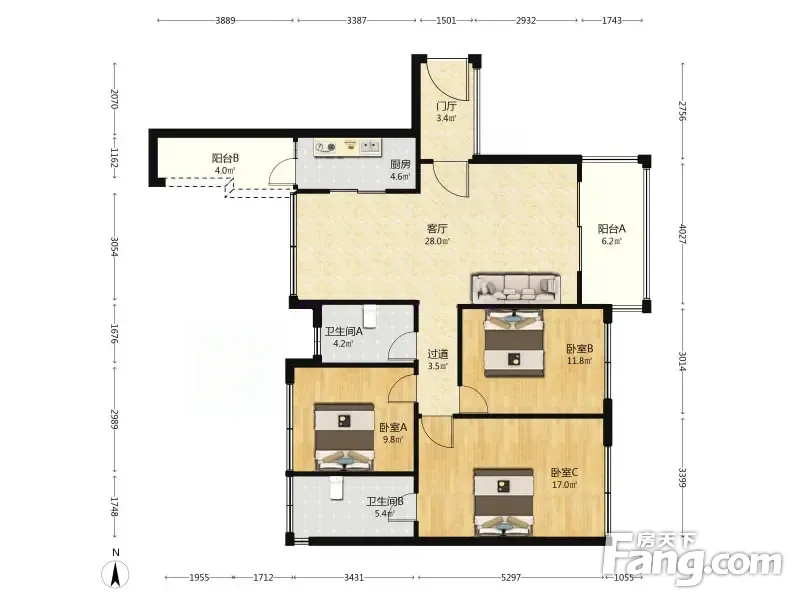 3室2厅1卫