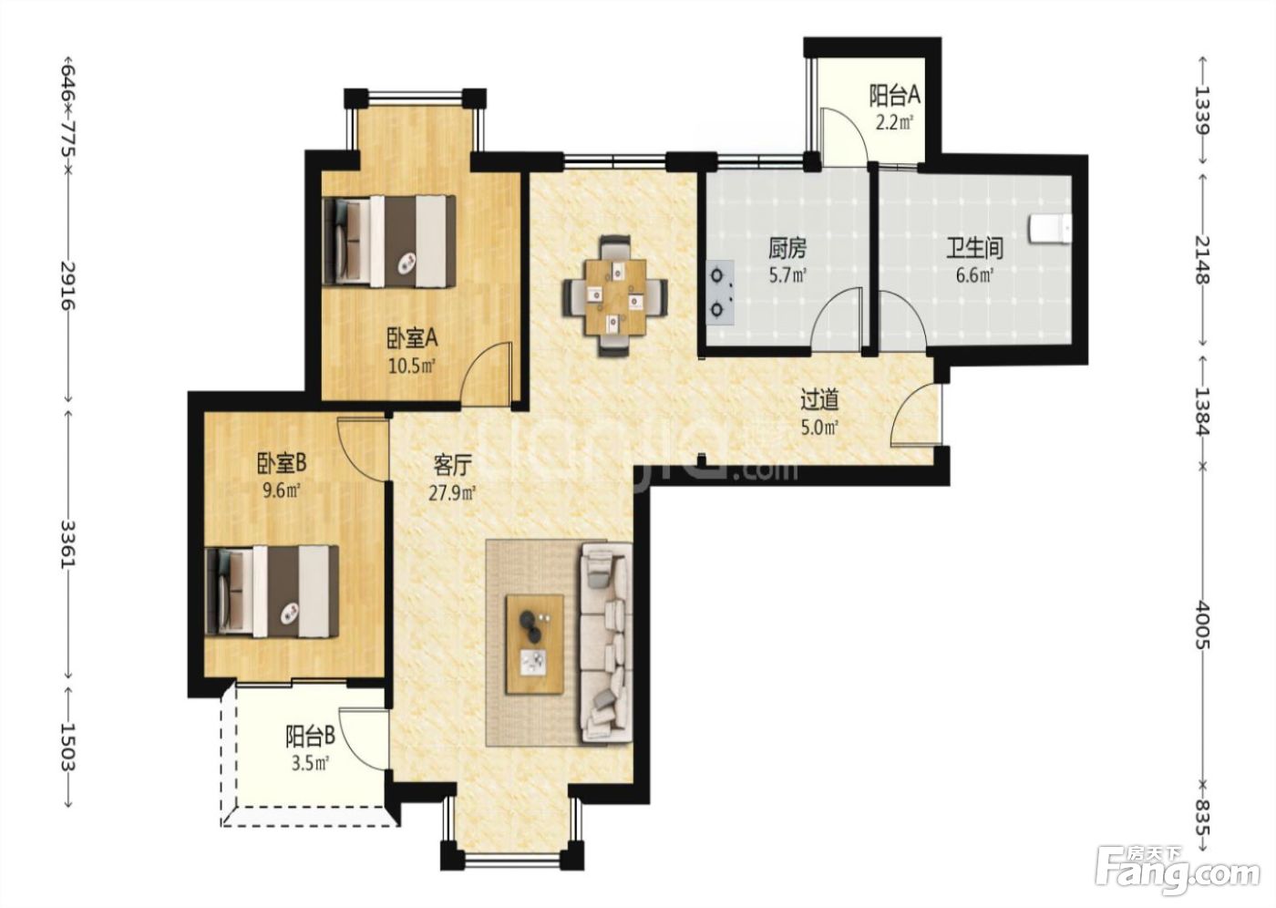 户型齐全,主打明厨,客厅朝南,双阳台二居