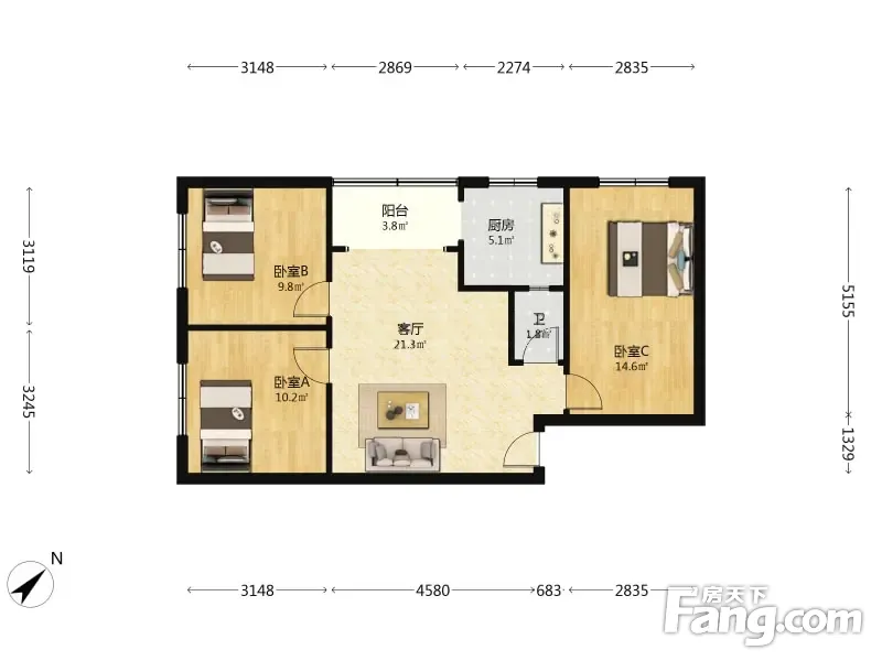 3室2厅1卫
