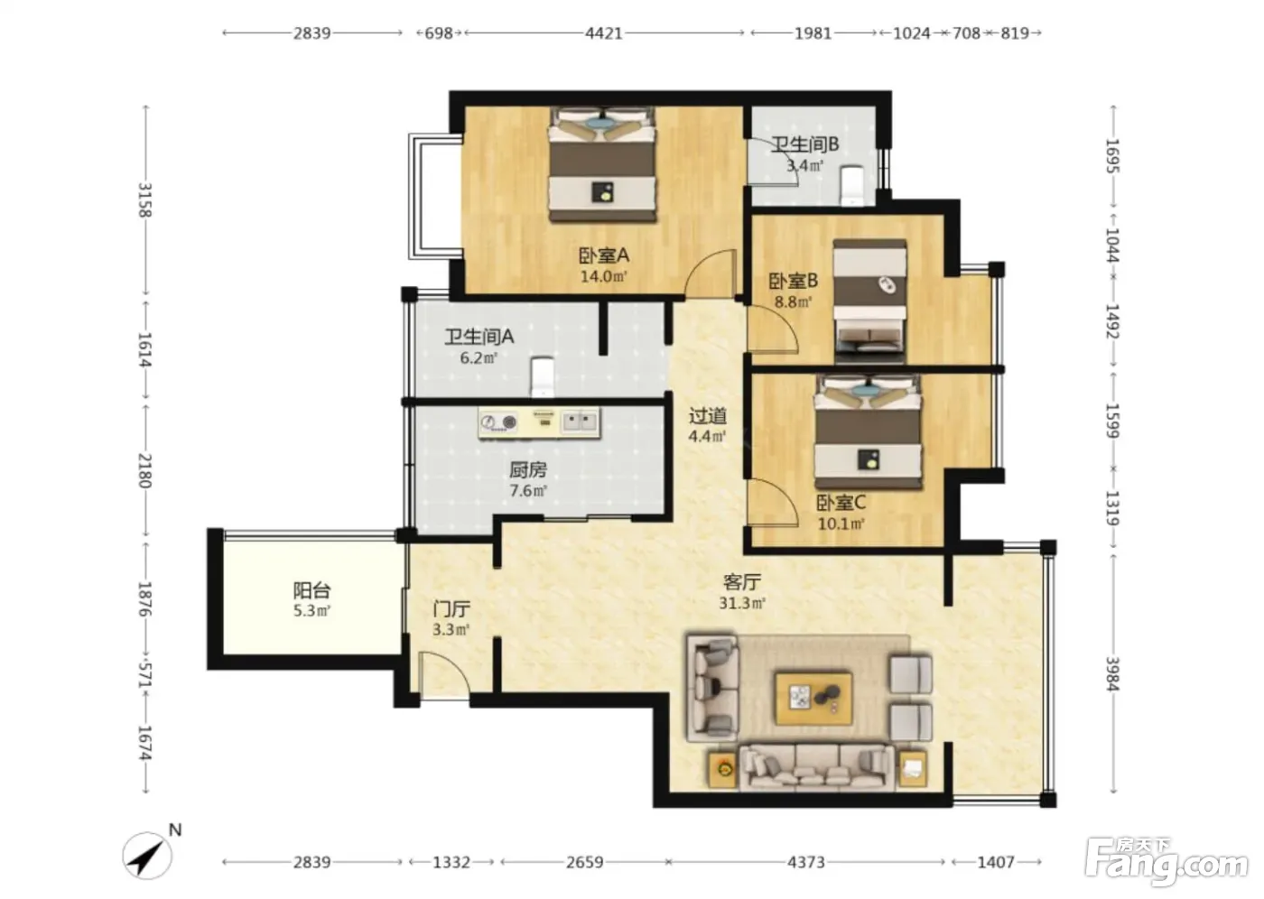 3室2厅1卫