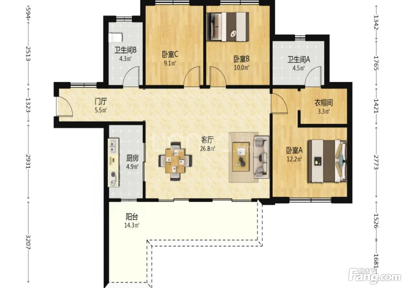 3室2厅1卫