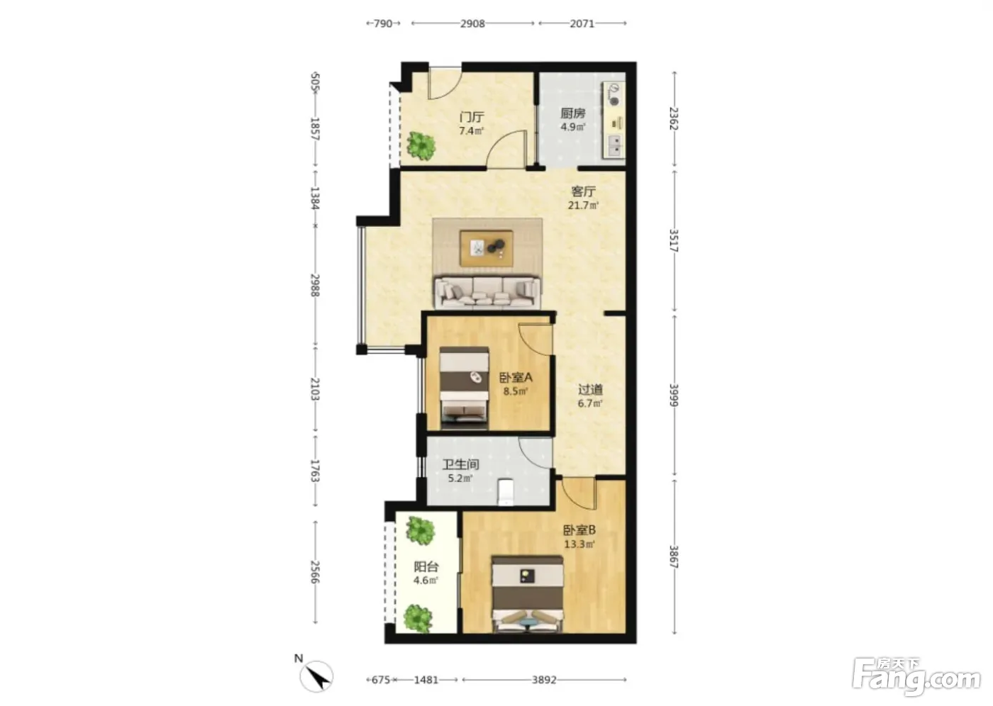 龙湖弗莱明戈一期 2室1厅 东南