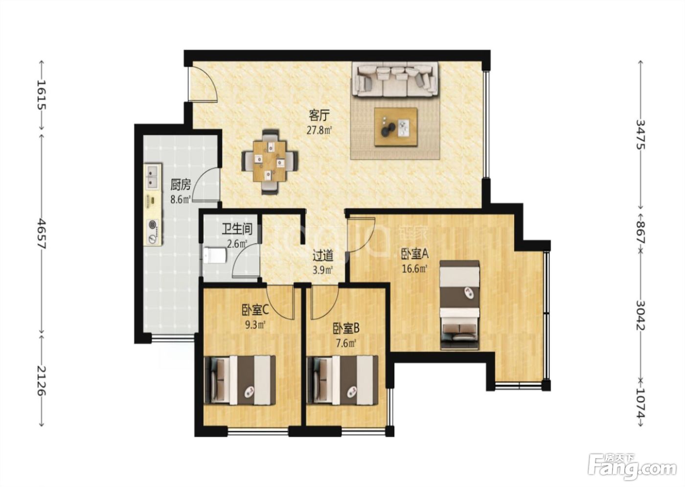 3室2厅1卫
